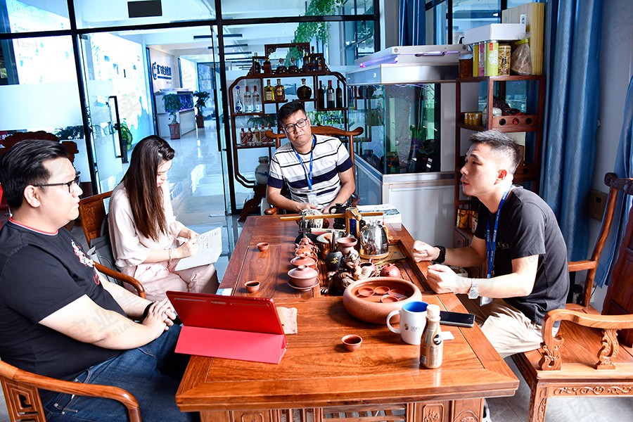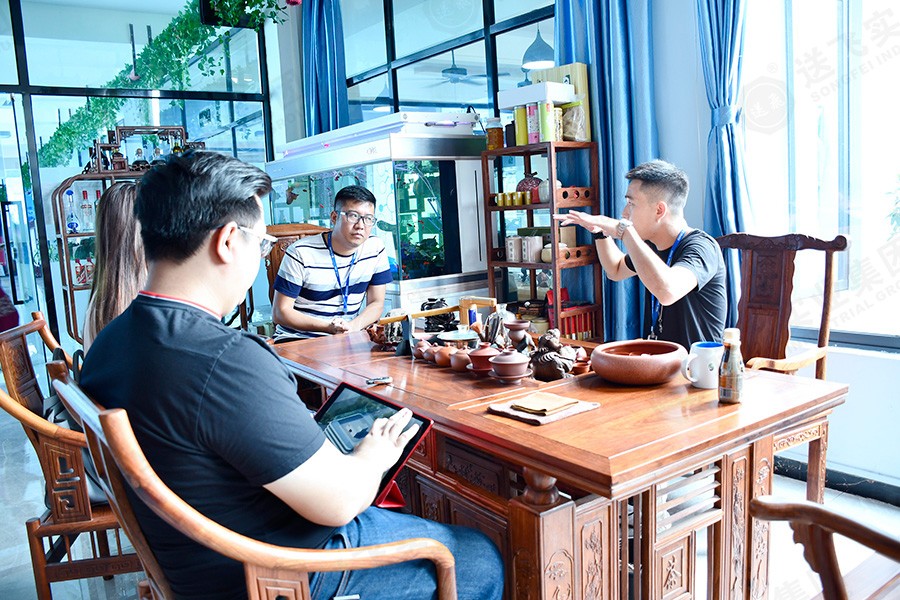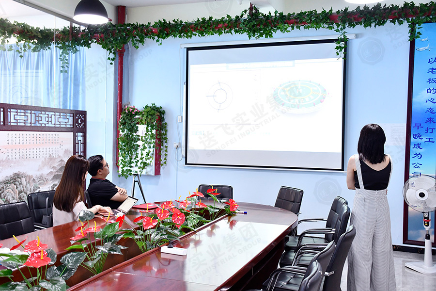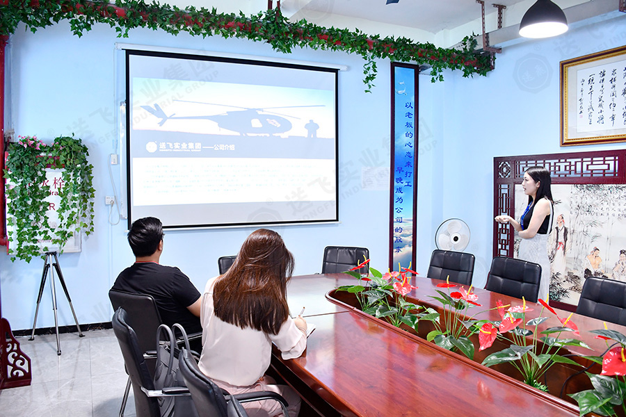 參觀結(jié)束后,在會議室,董事長助理為廣英科技園的領(lǐng)導(dǎo)就此次項目進行PPT講解。包括公司介紹、工程案例、設(shè)計詳解、施工流程。